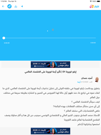 Akhbar Al Aan ofrece una colección única de podcasts, disponibles a través de una simple suscripción. Te brinda la oportunidad de compartir tus pensamientos sobre las noticias que te importan de la manera más fácil y accesible, y ser parte del emocionante mundo de las redes sociales.
